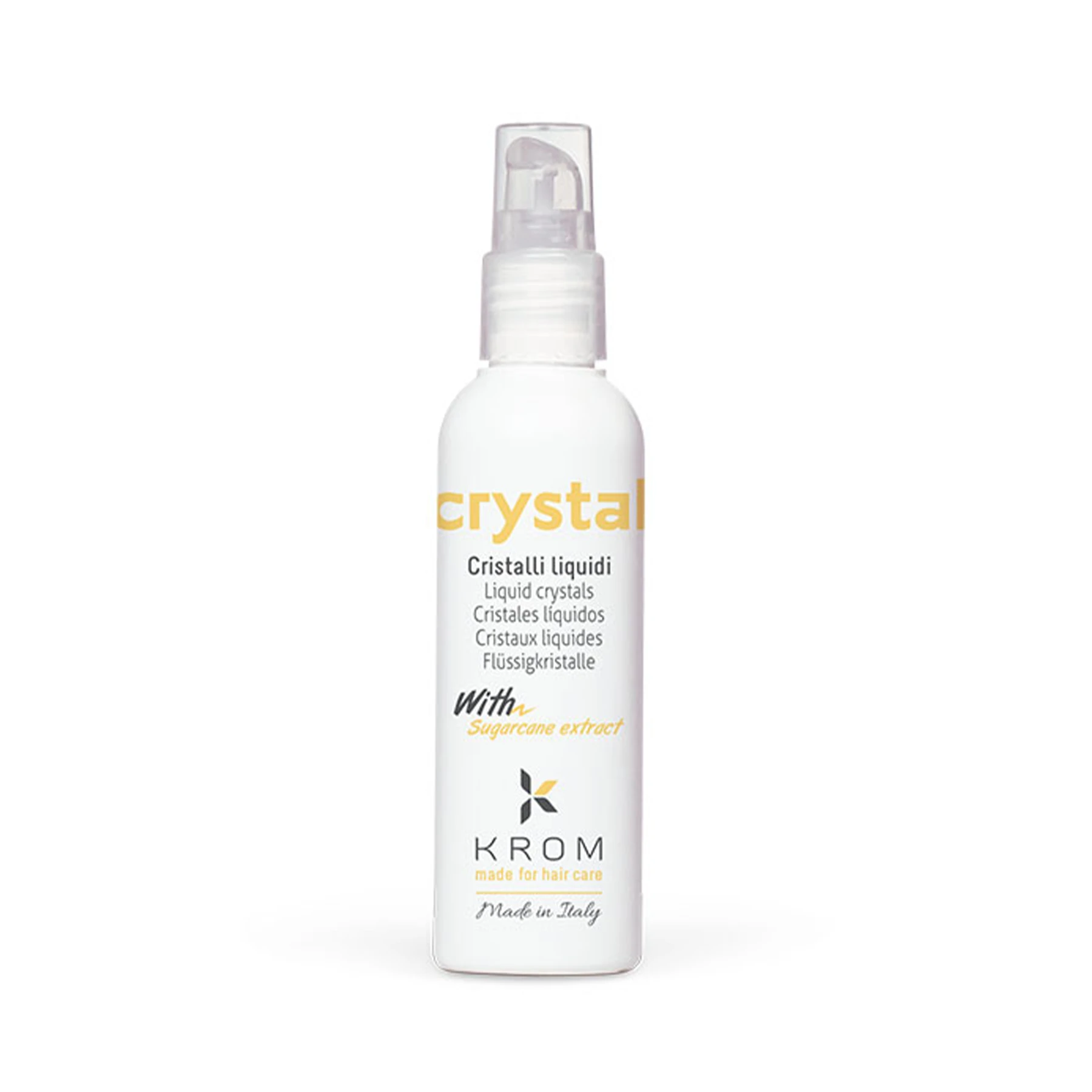 Представляємо вам KROM Crystal – рідкі кристали з екстрактом цукрового очерету. Рідкі кристали ефективно усувають видимі прояви посічених кінчиків, надають волоссю гладкість і блиск, а також зменшують статичну напругу волосся. Вони живлять і відновлюють структуру волосся, роблять його шовковистим і гладким, запобігають сплутуванню та полегшують розчісування. Кристали також надають волоссю природний блиск.